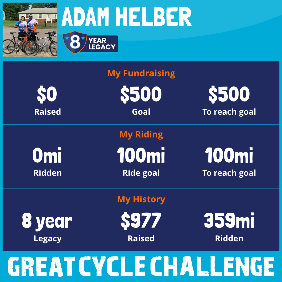 I've raised $0 My goal is $500 Donate Now