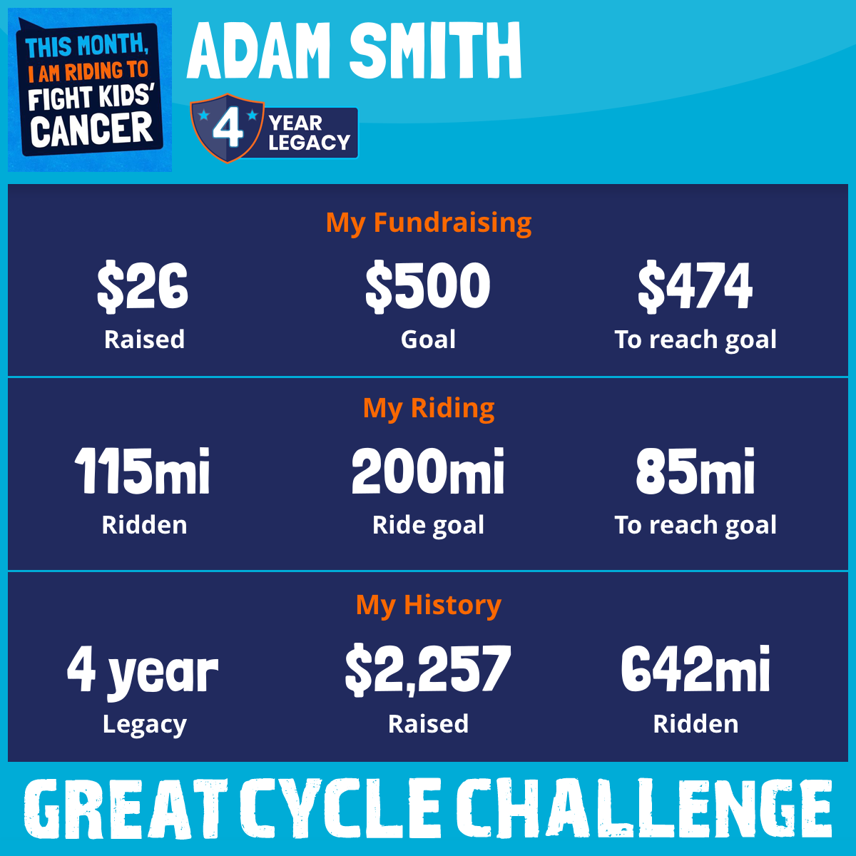 I am riding 200 mi to fight kids' cancer and save little lives. Please sponsor me to support my challenge!