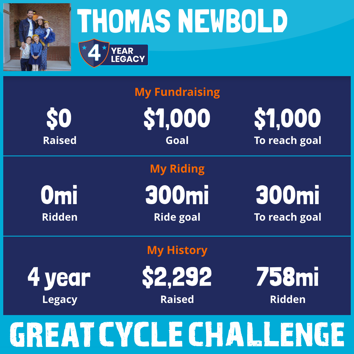 I am riding 300 mi in memory of my friend, Matthew Smith. Please sponsor me and support my challenge to fight kids' cancer and save little lives.