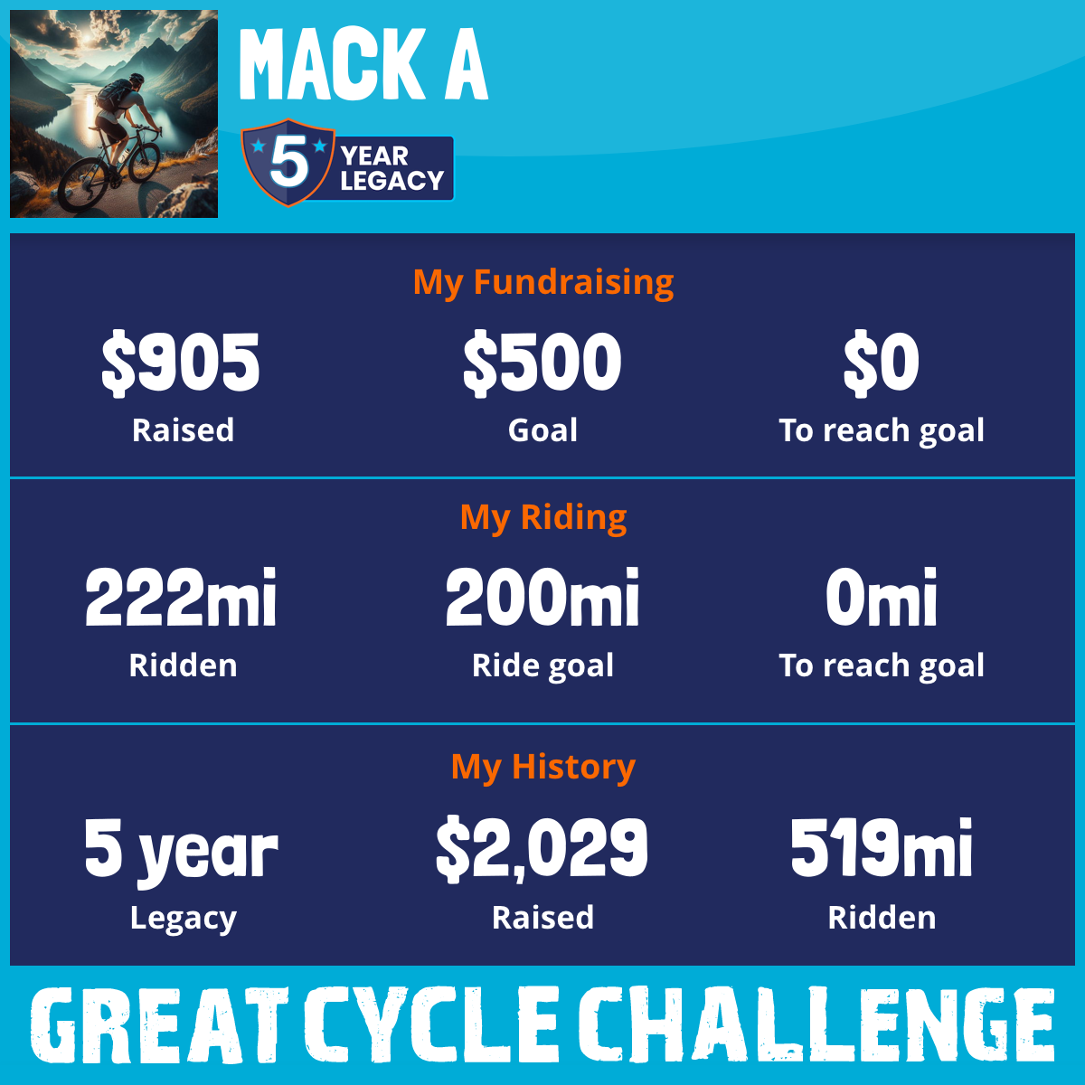 I am riding 200 mi to fight kids' cancer and save little lives. Please sponsor me to support my challenge!