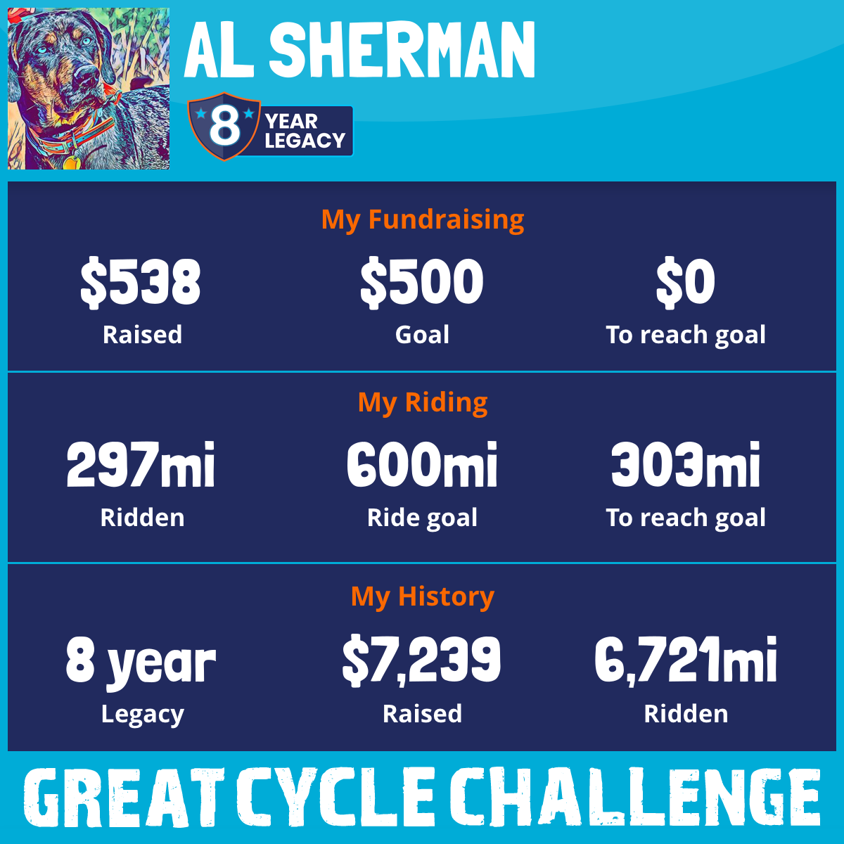 I am riding 600 mi for my wife, Claire Sherman. Please sponsor me and support my challenge to fight kids' cancer and save little lives.