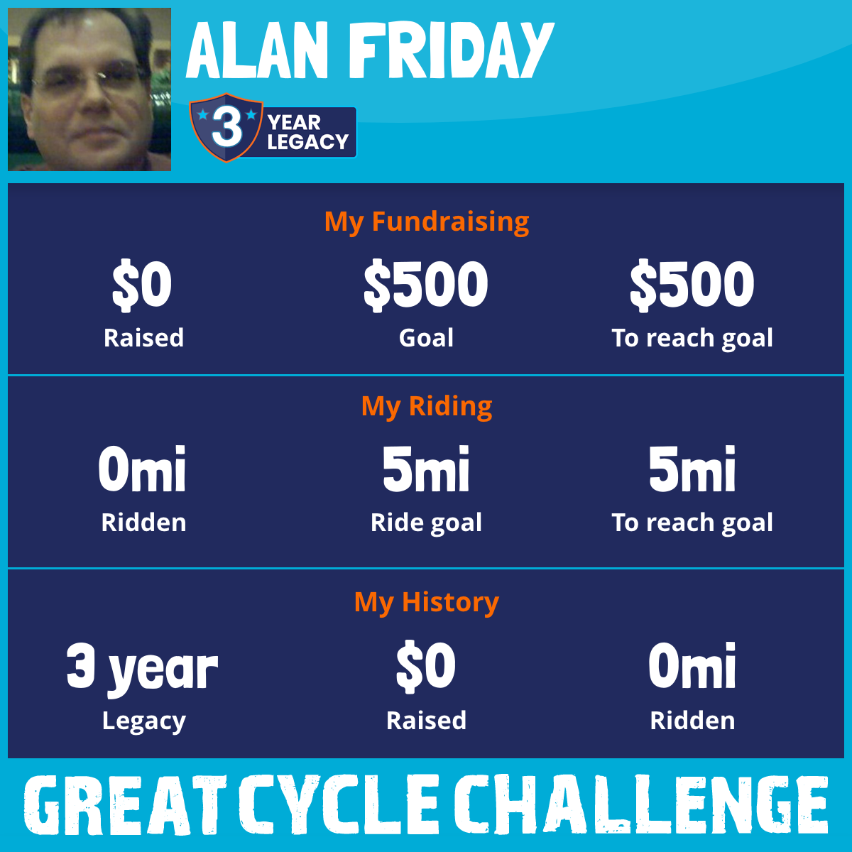 I've raised $0 My goal is $500 Donate Now