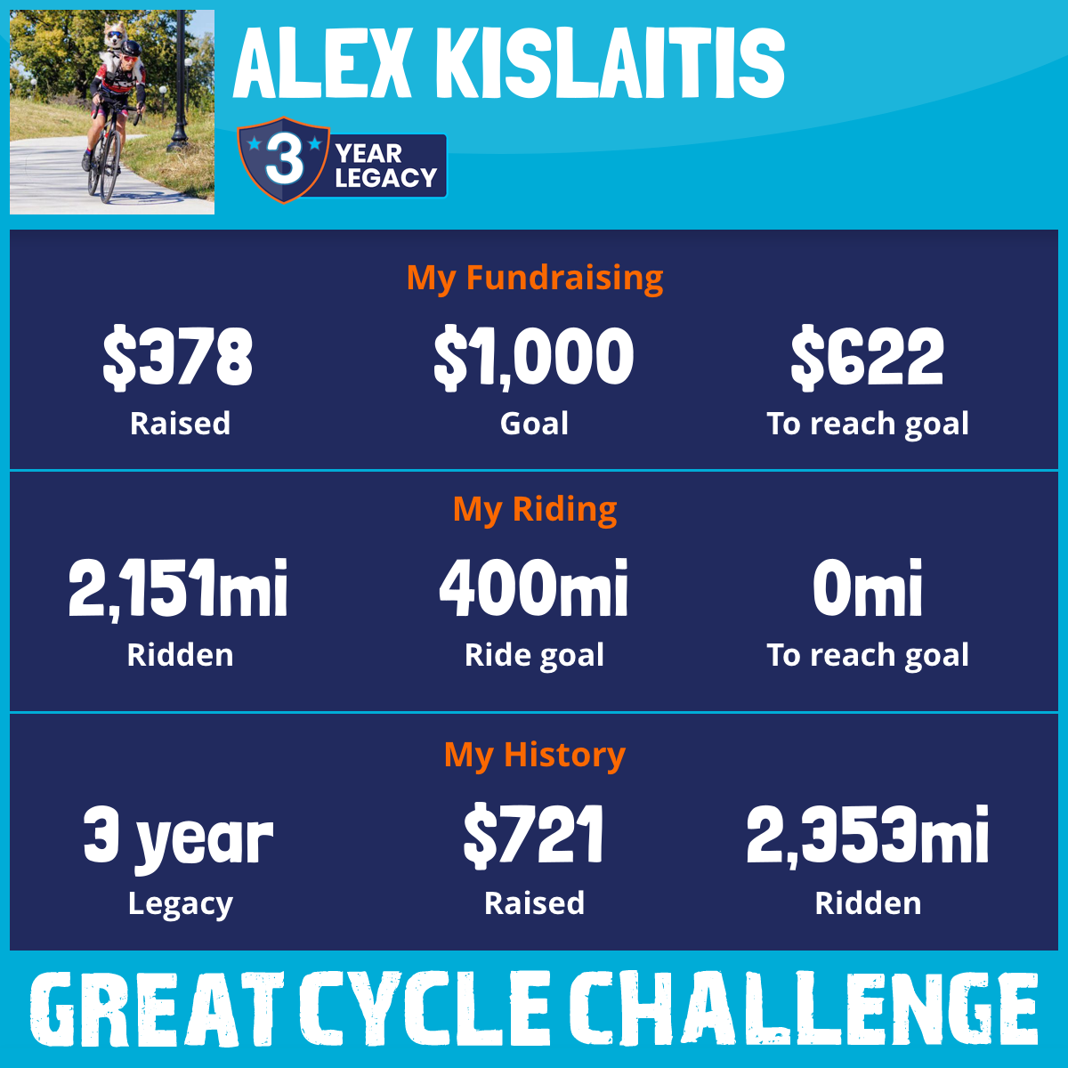 I am riding 400 mi to fight kids' cancer and save little lives. Please sponsor me to support my challenge!