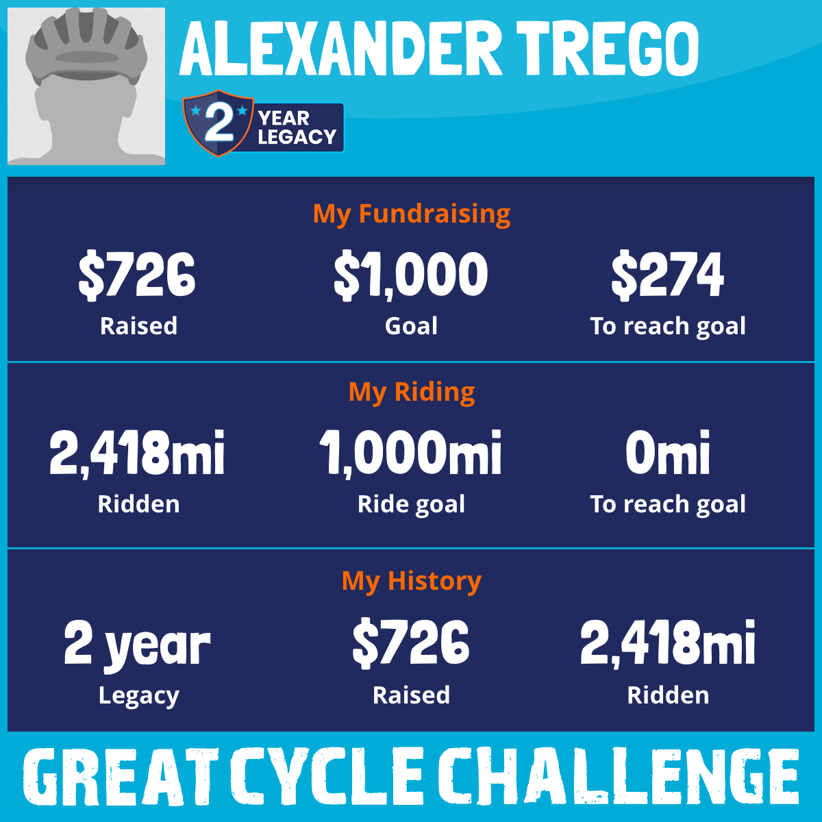 2,418 mi Ridden$726 Raised2025