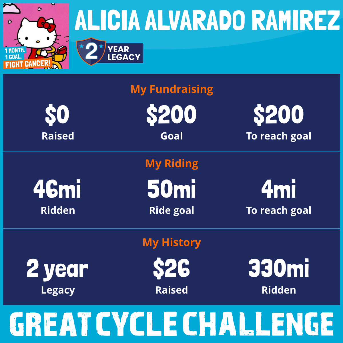 I am riding 300 mi to fight kids' cancer and save little lives. Please sponsor me to support my challenge!