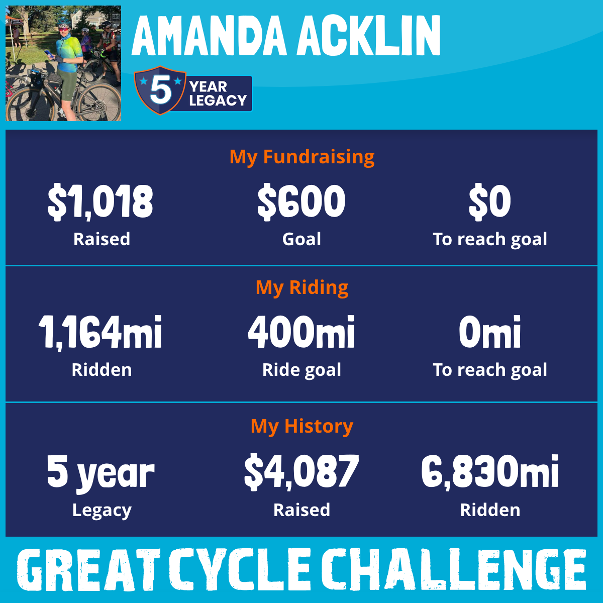 1,164 mi Ridden$1,018 Raised2025