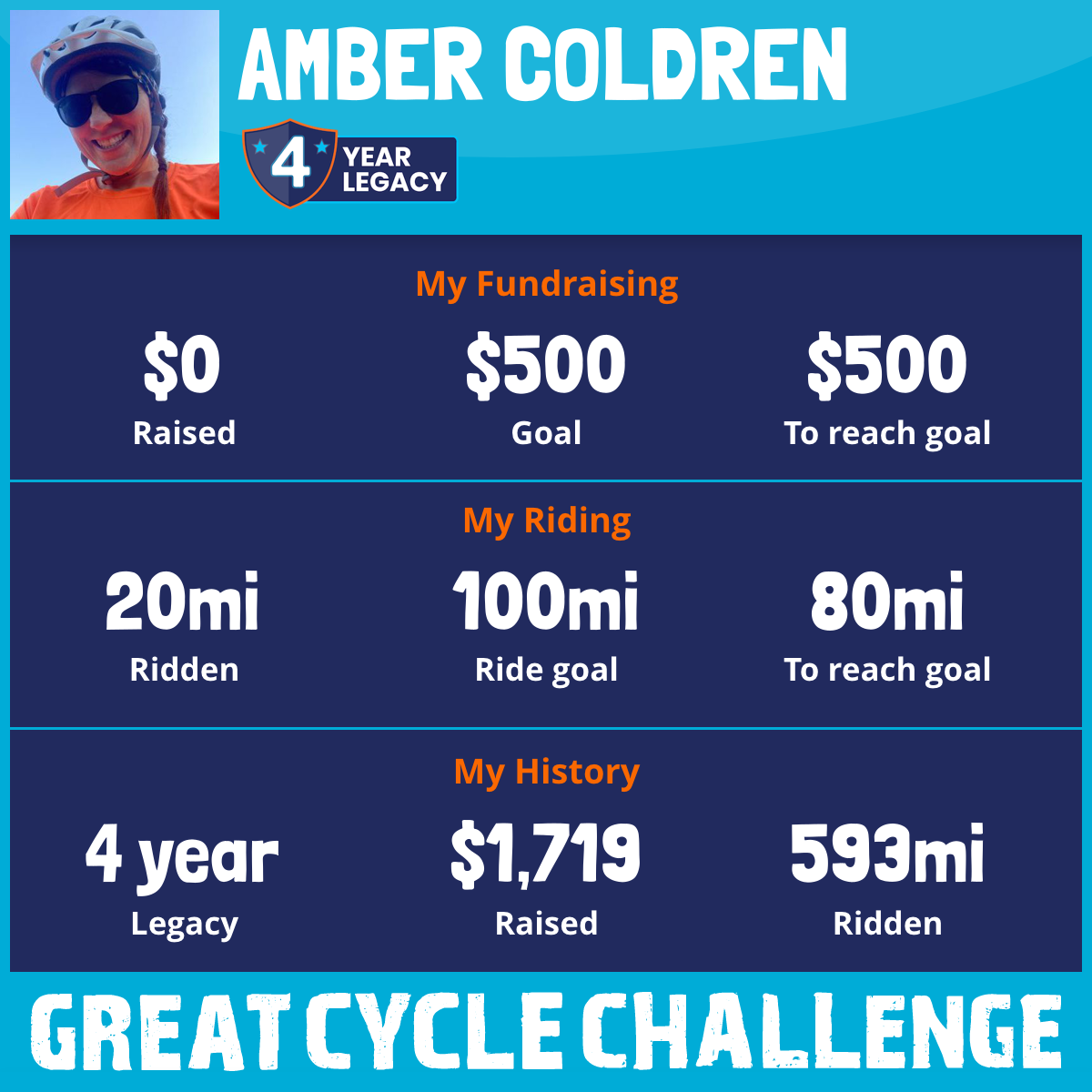 I am riding 100 mi in memory of Amanda. Please sponsor me and support my challenge to fight kids' cancer and save little lives.