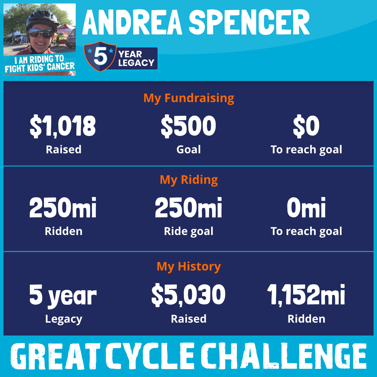 250 mi Ridden$1,080 Raised2023