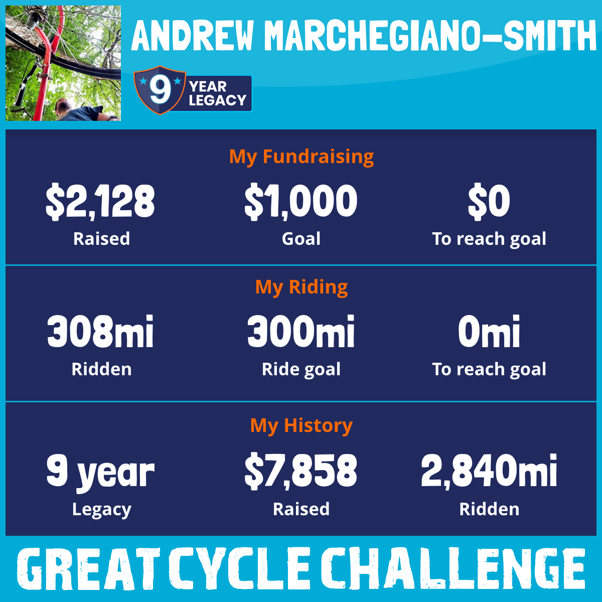 My brother just passed late last year due to a multi-year battle with Ewing's Sarcoma and I think its tasteful to dedicate this ride to him. however, I must also acknowledge the impact that cancer has had on my family. My niece and nephew both fought leukemia, thankfully to remission. My mother conquered late stage colon cancer when I was young and it changed the trajectory of the household. Several of my family members have battled breast cancer and we can all be thankful for relatively positive outcomes. There are several acquaintances my workplace that have had both positive and negative outcomes over the years. new treatments are developed every day, and so many of us are affected that it would behoove us to make some effort to make these treatments avalaible to everyone in need and to push to fund research into rare and unpopular diseases.