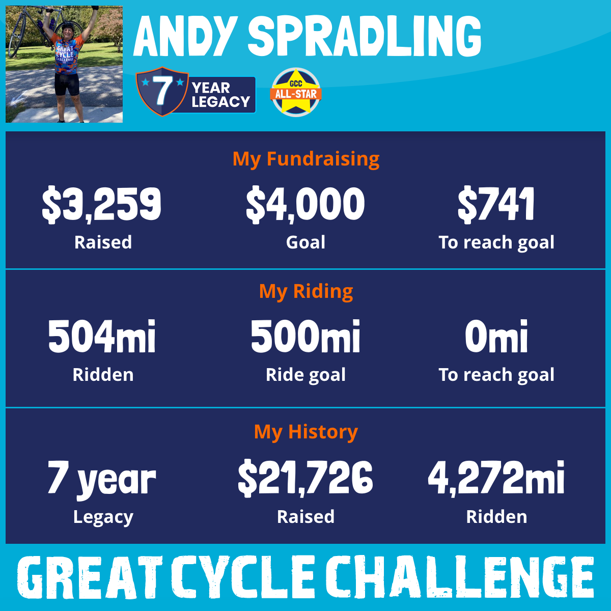 I am riding 500 mi in memory of Kelly, Jody, Mike, Loren, Kelli K., Judy. Please sponsor me and support my challenge to fight kids' cancer and save little lives.