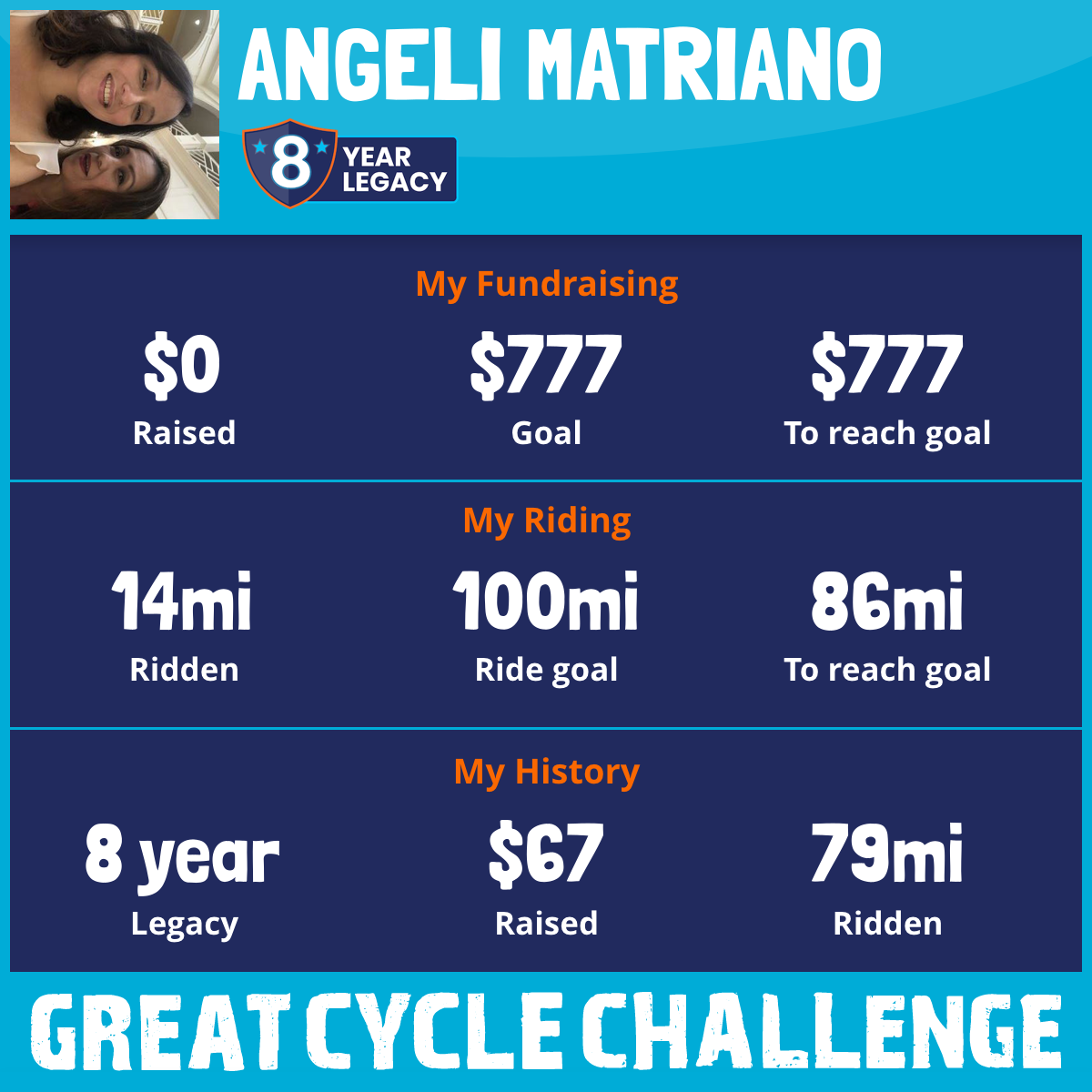 I am riding 100 mi to fight kids' cancer and save little lives. Please sponsor me to support my challenge!