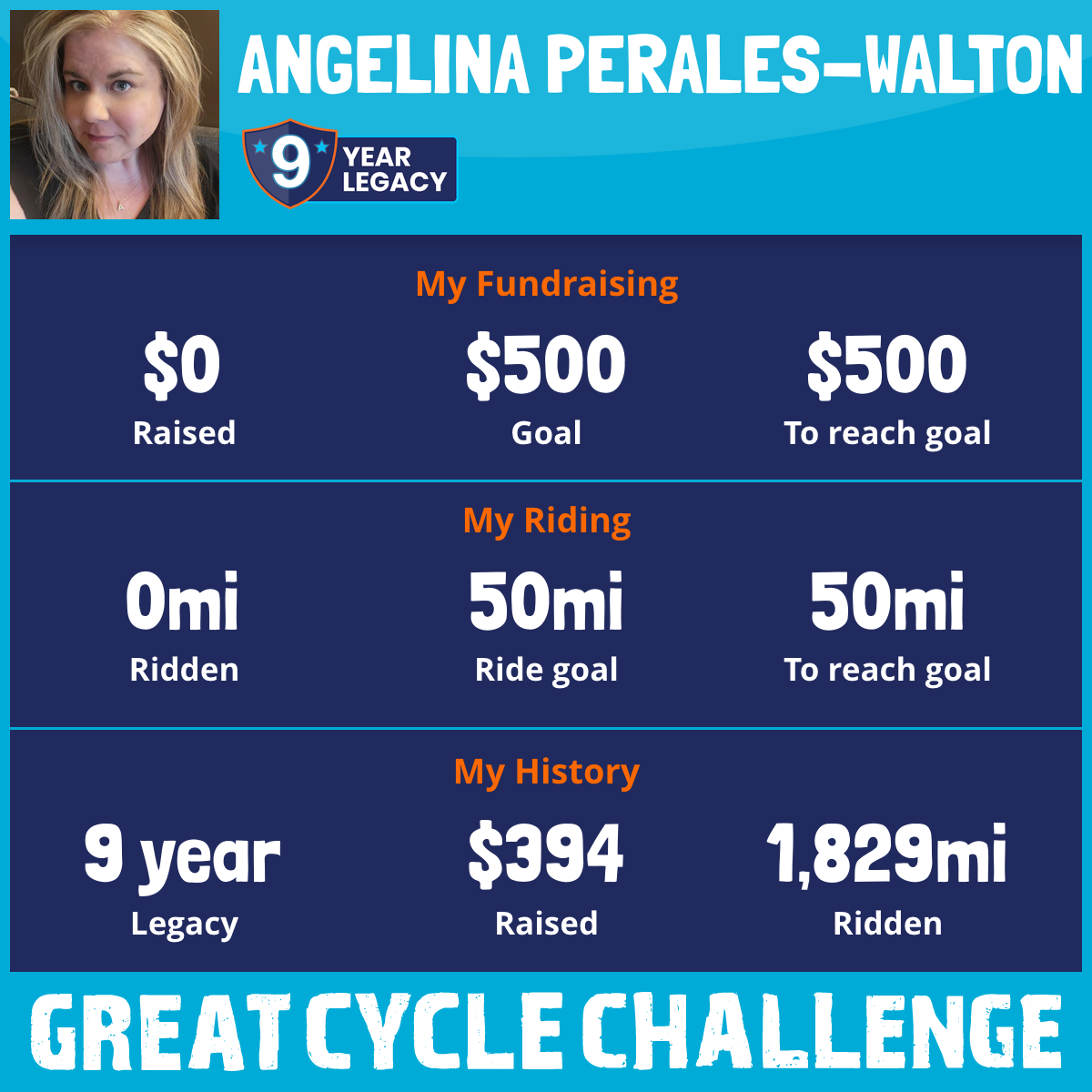 I am riding 50 mi in memory of Mom/Grandfather/Godmother/Titi//Jillian/Karen/Deanna. Please sponsor me and support my challenge to fight kids' cancer and save little lives.