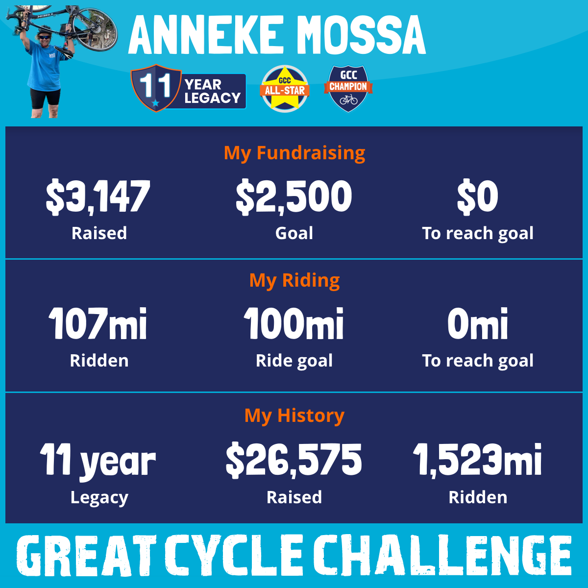 107 mi Ridden$3,147 Raised2025