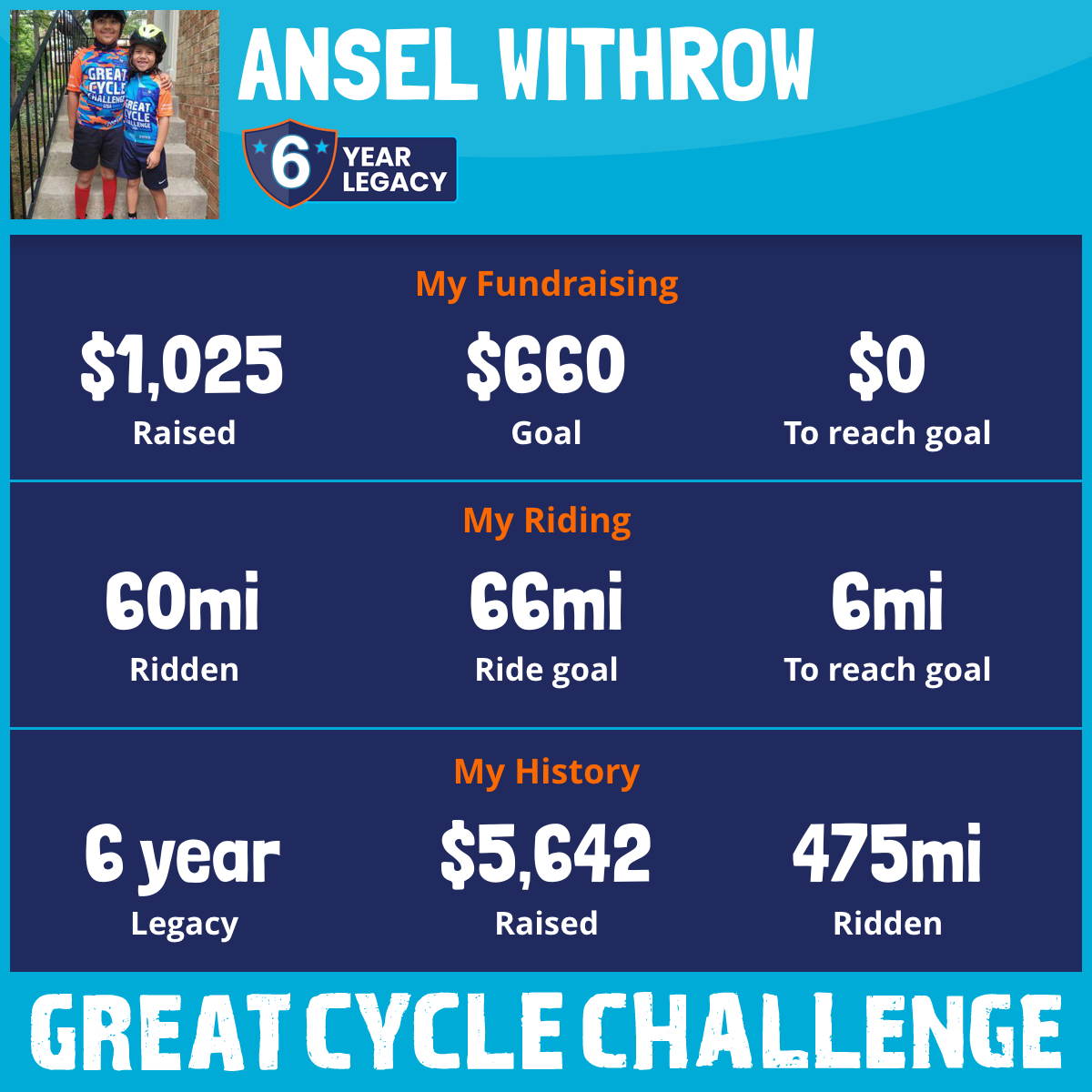 This September, I am taking part in my 6th Great Cycle Challenge to fight kids' cancer! My goal is to ride 66mi and raise $660 for the CCRF!