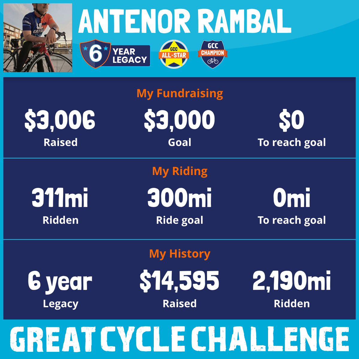 My personal goal is to ride over 300 miles and raise $3,000 throughout the month of September.