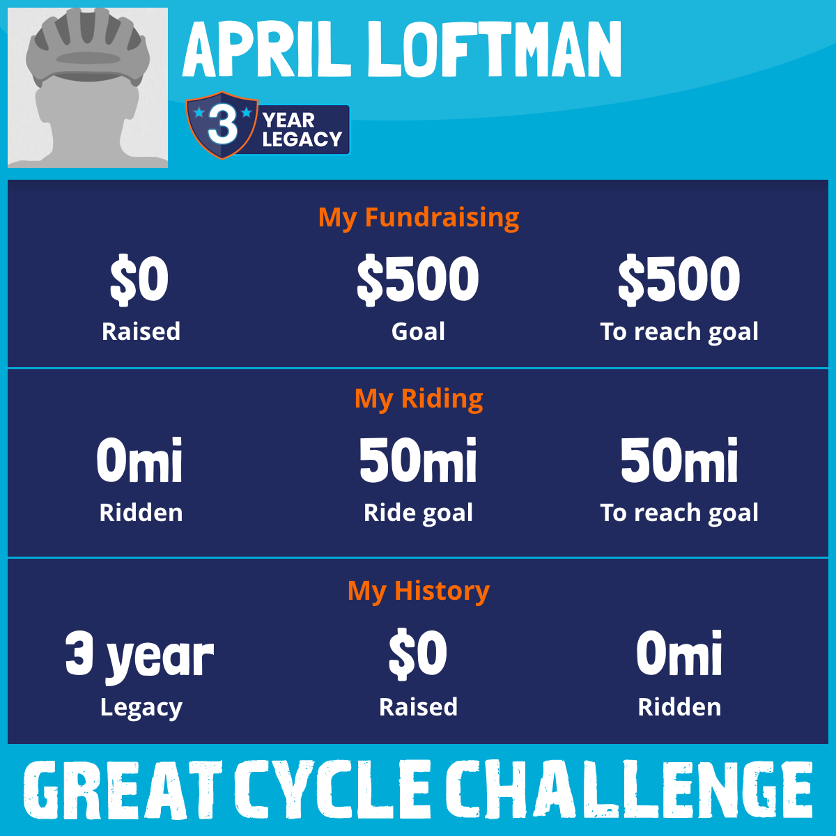I am riding 50 mi for My grandma. Please sponsor me and support my challenge to fight kids' cancer and save little lives.