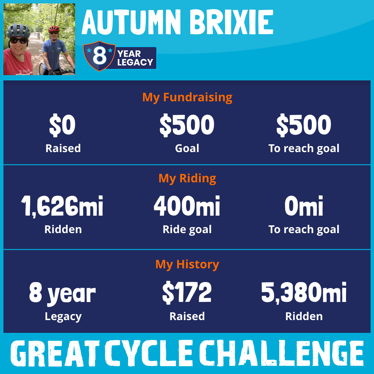 I am riding 400 mi for my sister, My beautiful sister. Please sponsor me and support my challenge to fight kids' cancer and save little lives.