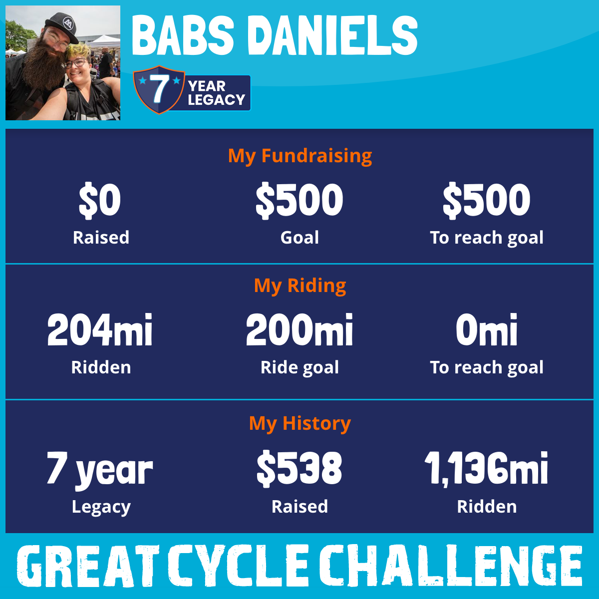 I am riding 200 mi in memory of my grandmother, Harriet Pierce. Please sponsor me and support my challenge to fight kids' cancer and save little lives.