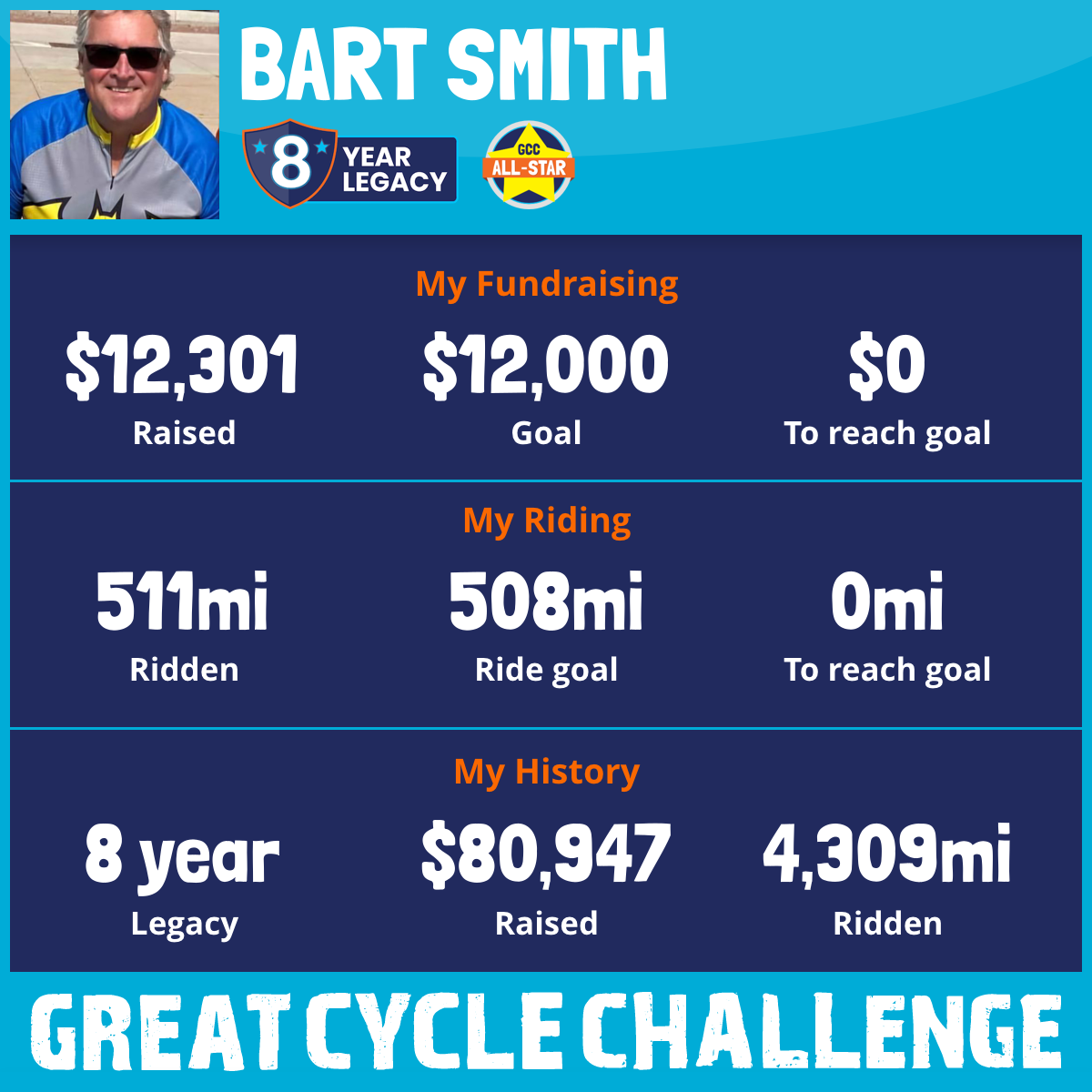 Year 8 ... this September, I am again taking part in the Great Cycle Challenge to fight kids' cancer for my eighth annual challenge! Cancer remains the biggest killer of children from disease in the United States. Over 15,700 children are diagnosed every year, and sadly, 38 children die of cancer every week. Kids must live life without having to fight for it.