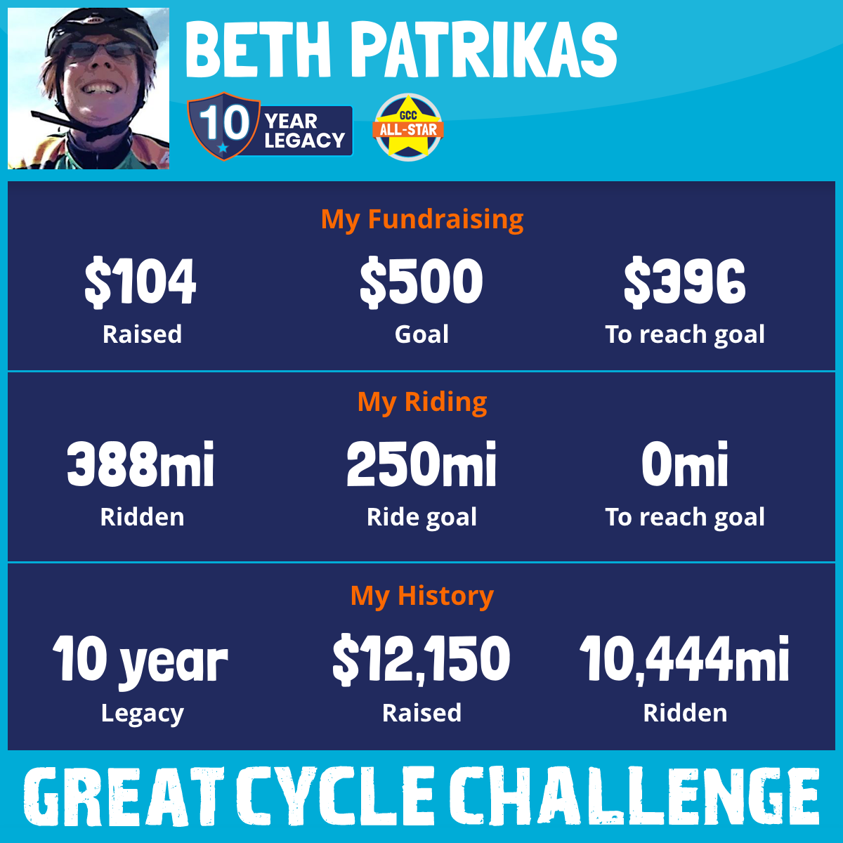 388 mi Ridden$104 Raised2025