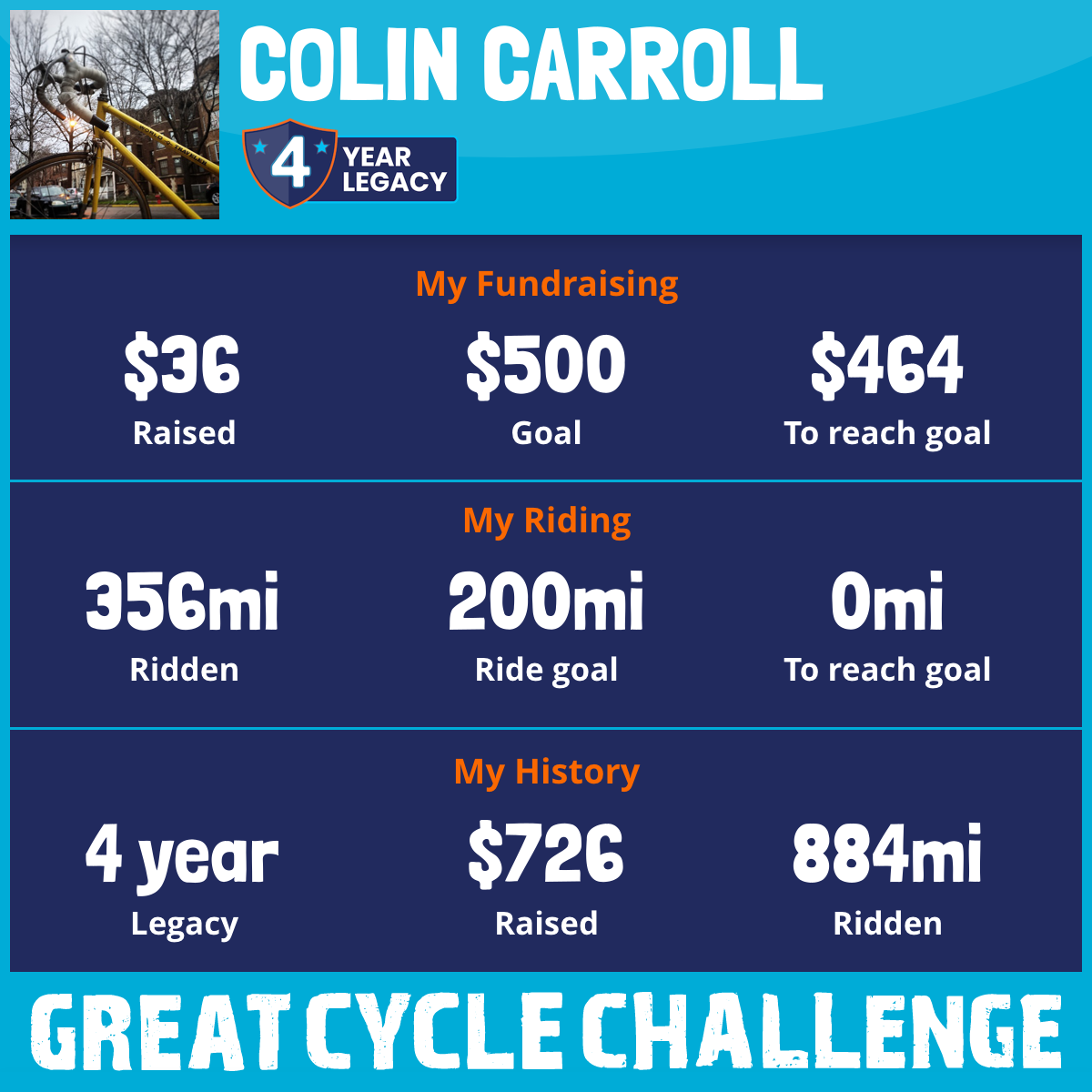 I am riding 200 mi in memory of my dad, Kevin Carroll. Please sponsor me and support my challenge to fight kids' cancer and save little lives.
