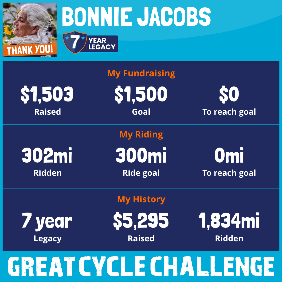 302 mi Ridden$1,503 Raised2025