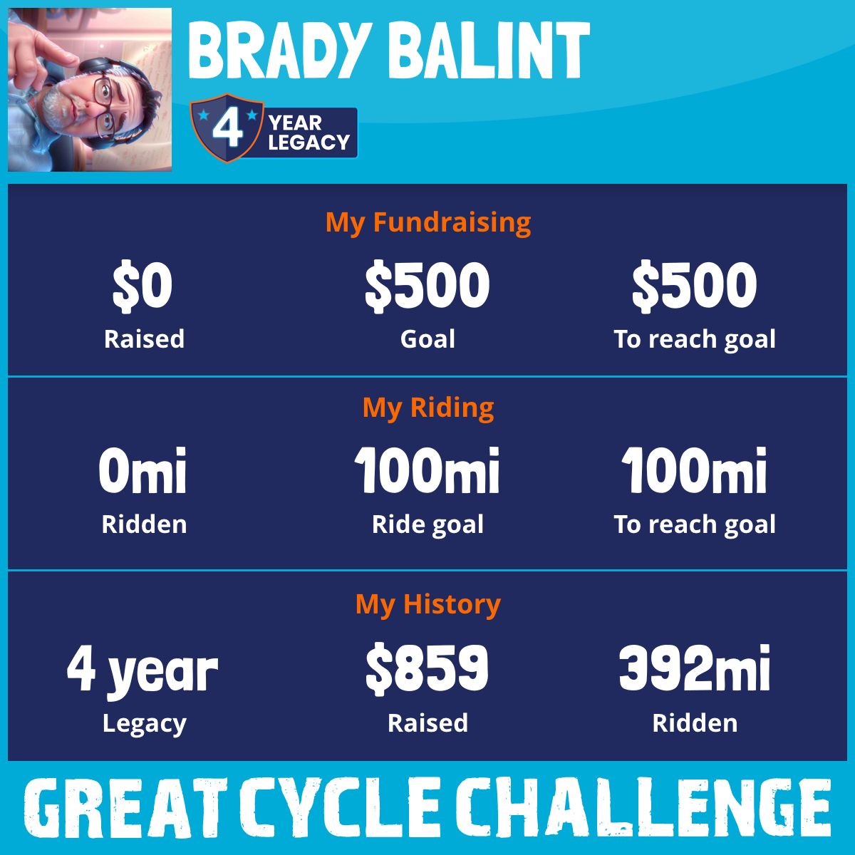 I am riding 100 mi in memory of my dad, Dennis Balint. Please sponsor me and support my challenge to fight kids' cancer and save little lives.