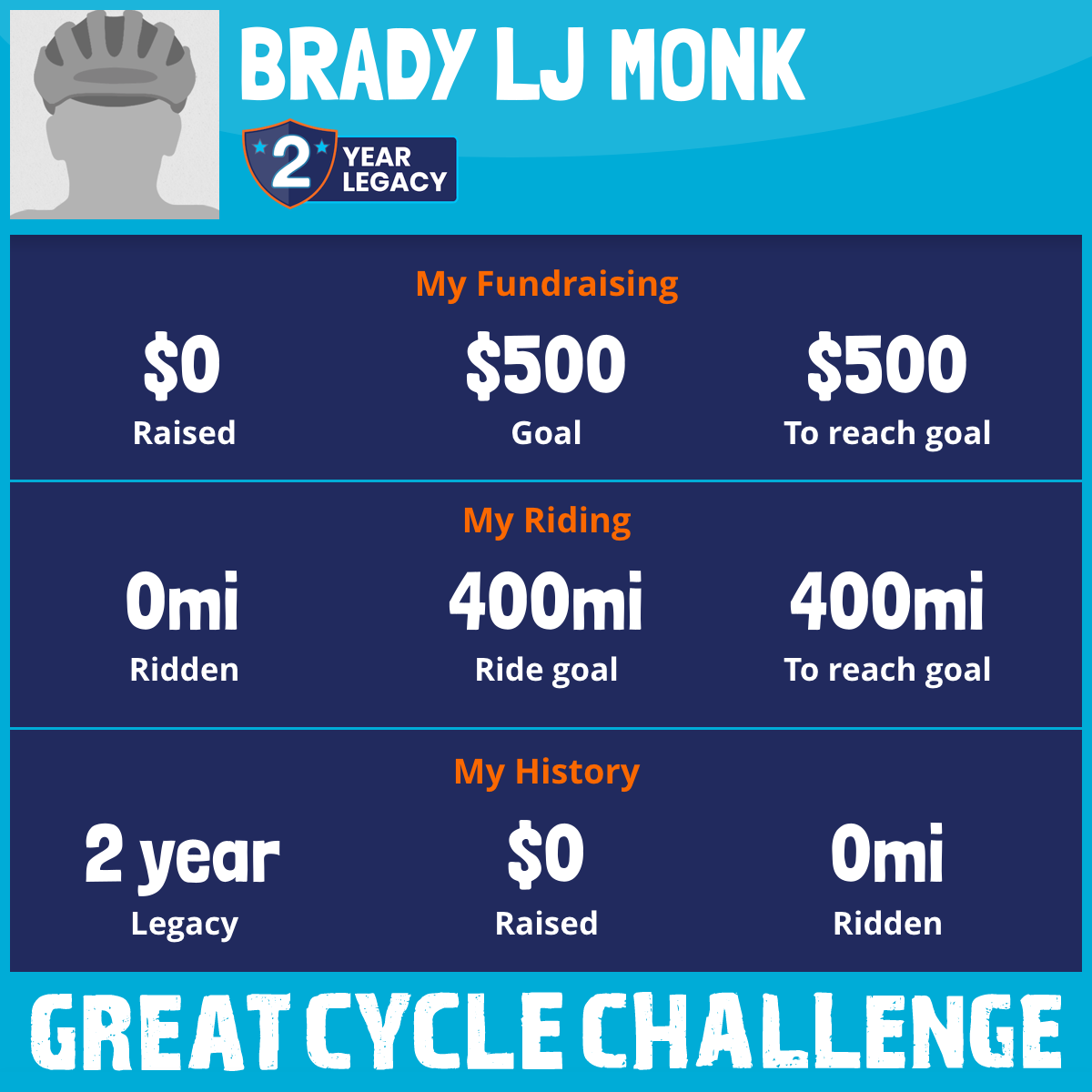 I've Ridden 0.0 mi My goal is 400 mi