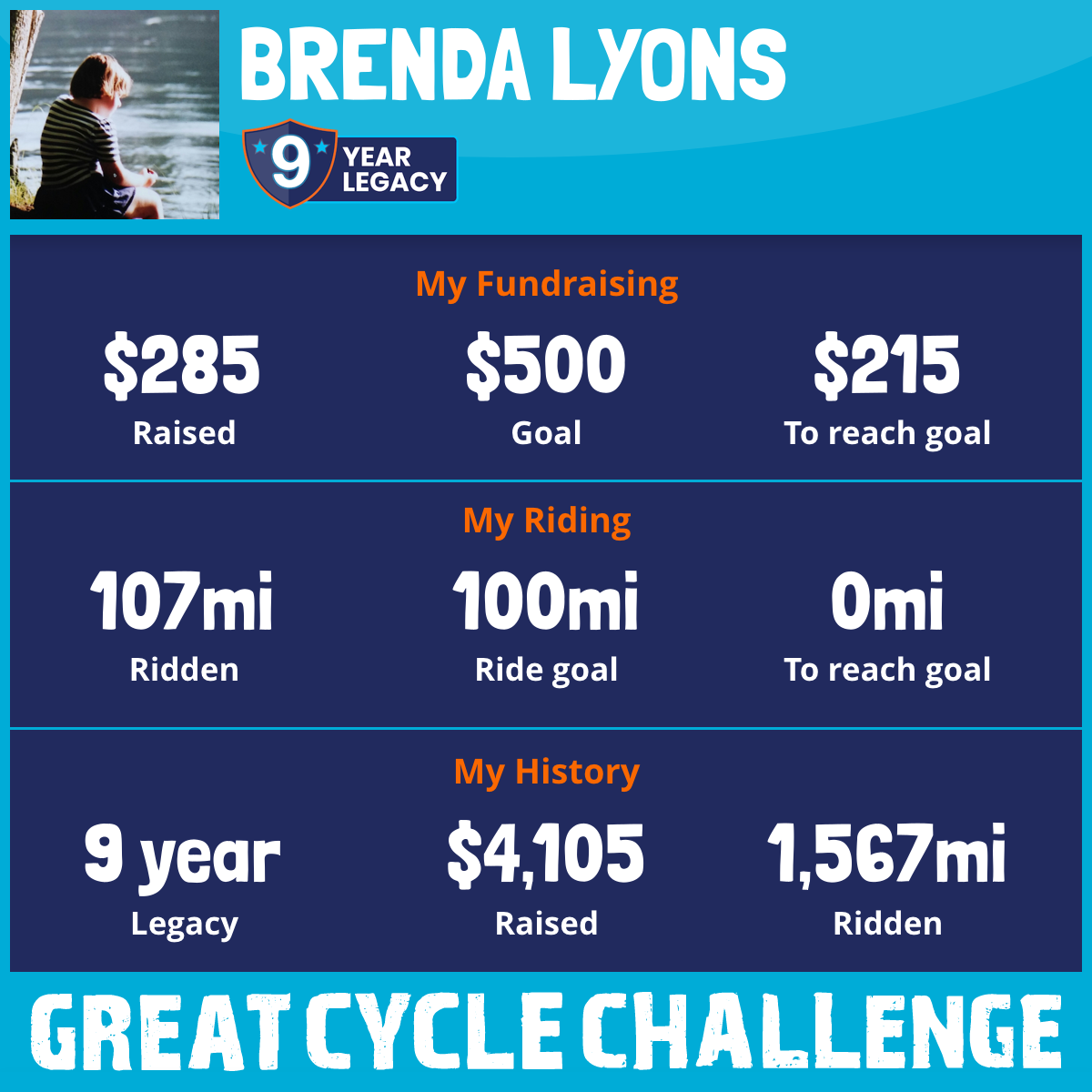 Chris (Rachel's Aunt) gets a team together, through the Great Cycle Challenge. This year we are Rachel's Roadies.