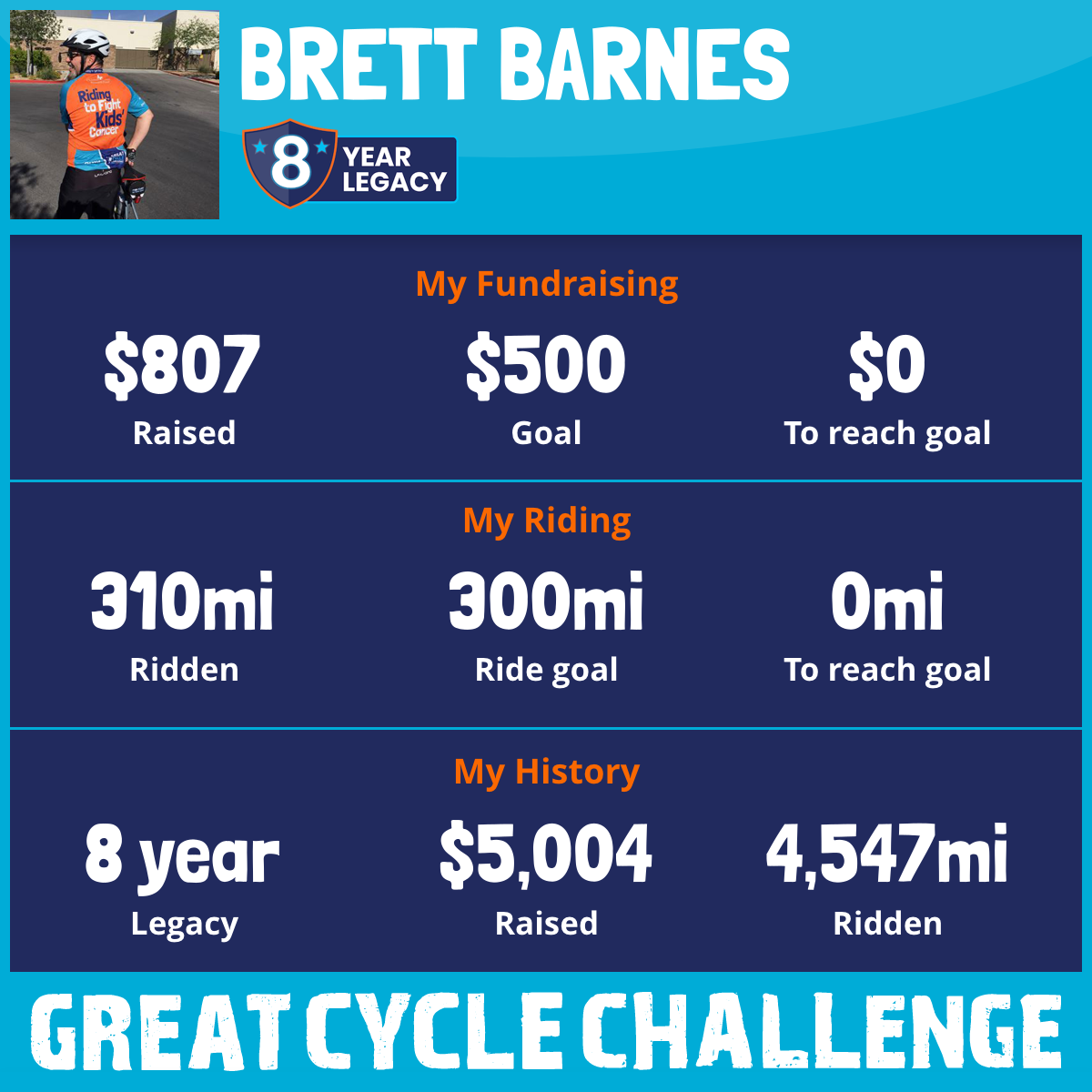 I am riding 300 mi for Rockin Dave. Please sponsor me and support my challenge to fight kids' cancer and save little lives.