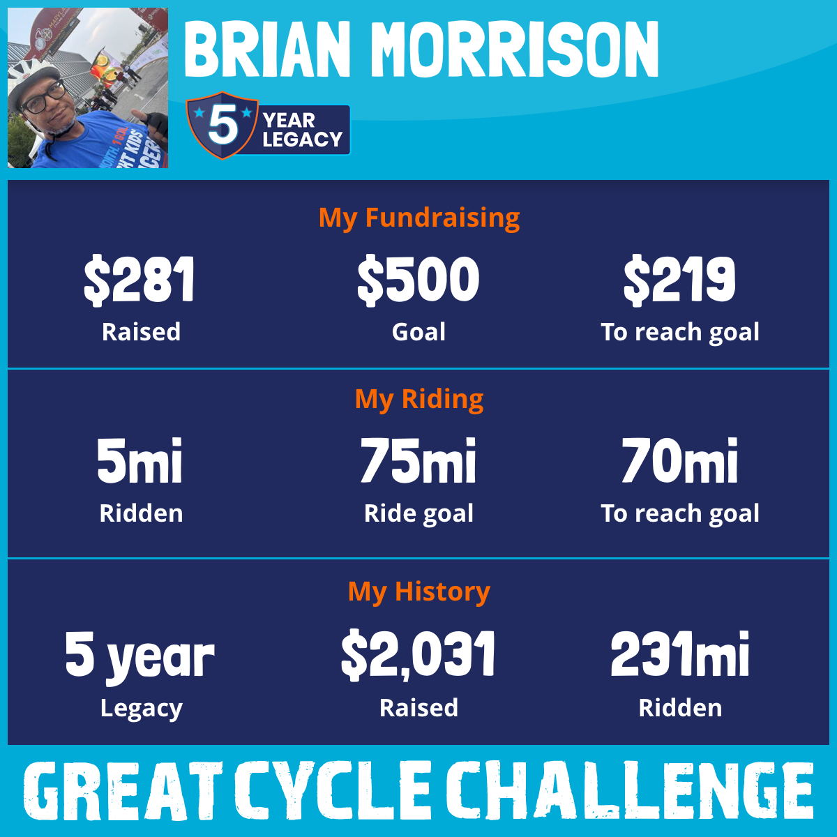 37 mi Ridden$305 Raised2023