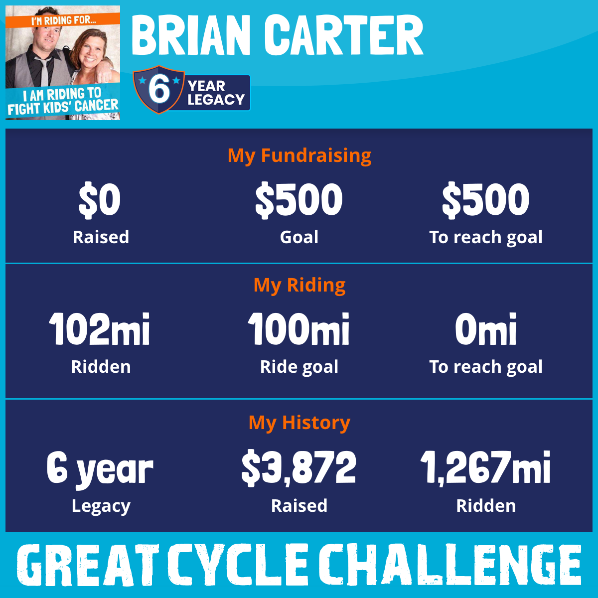 I am riding 100 mi in memory of Brandi. Please sponsor me and support my challenge to fight kids' cancer and save little lives.
