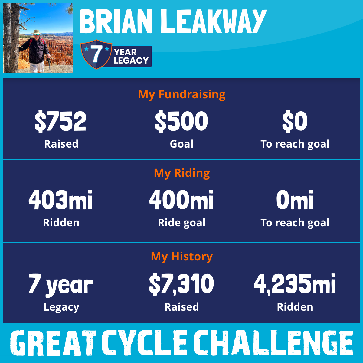 Please support me by making a donation to give these kids the brighter futures they deserve. https://greatcyclechallenge.com/Riders/BrianLeakway