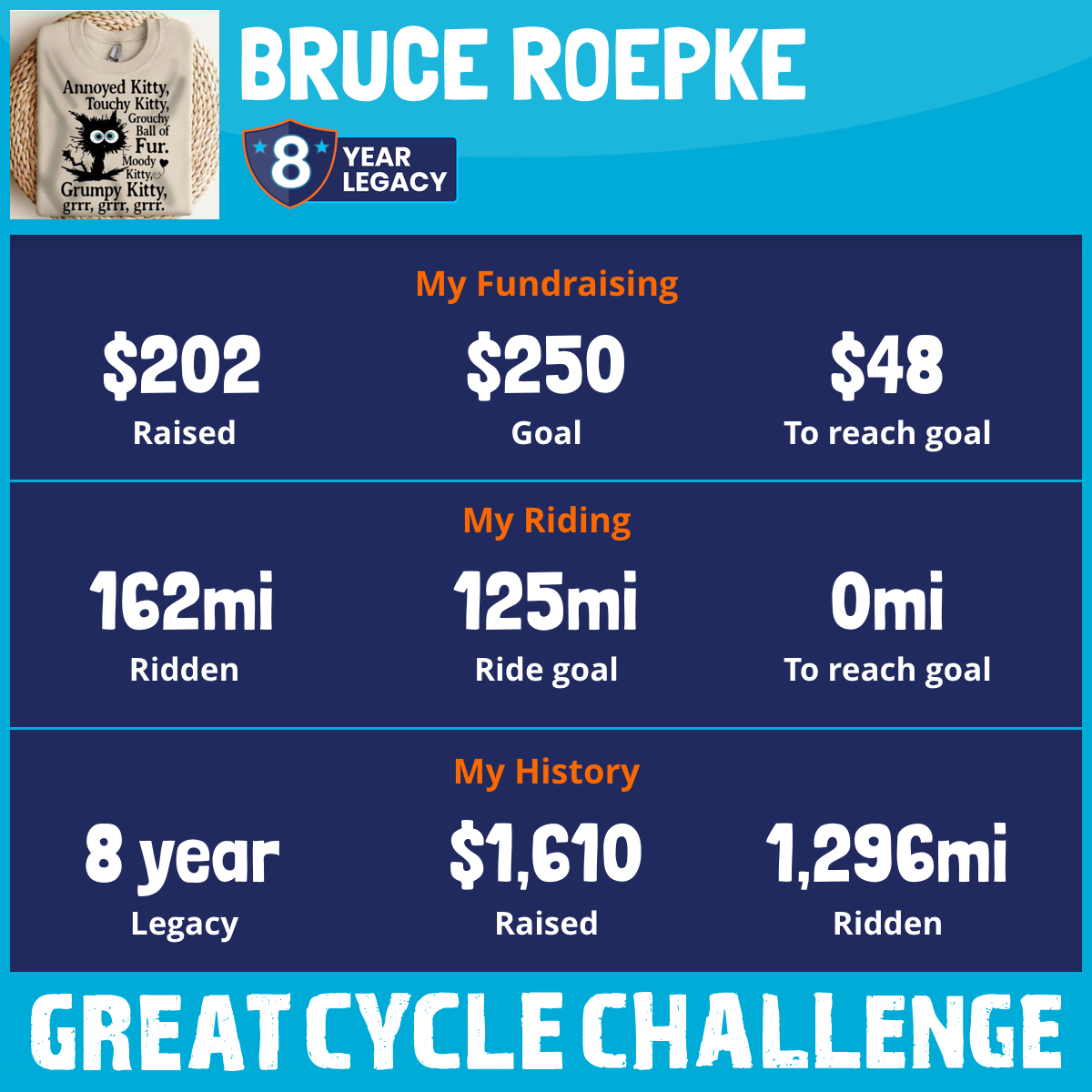 I am riding 125 mi to fight kids' cancer and save little lives. Please sponsor me to support my challenge!