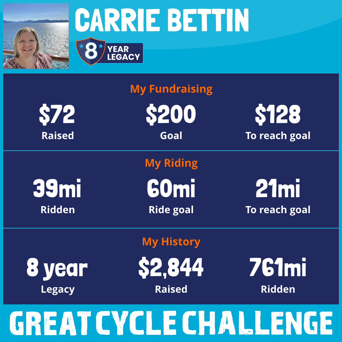 I am riding 60 mi in memory of Judy Powell. Please sponsor me and support my challenge to fight kids' cancer and save little lives.