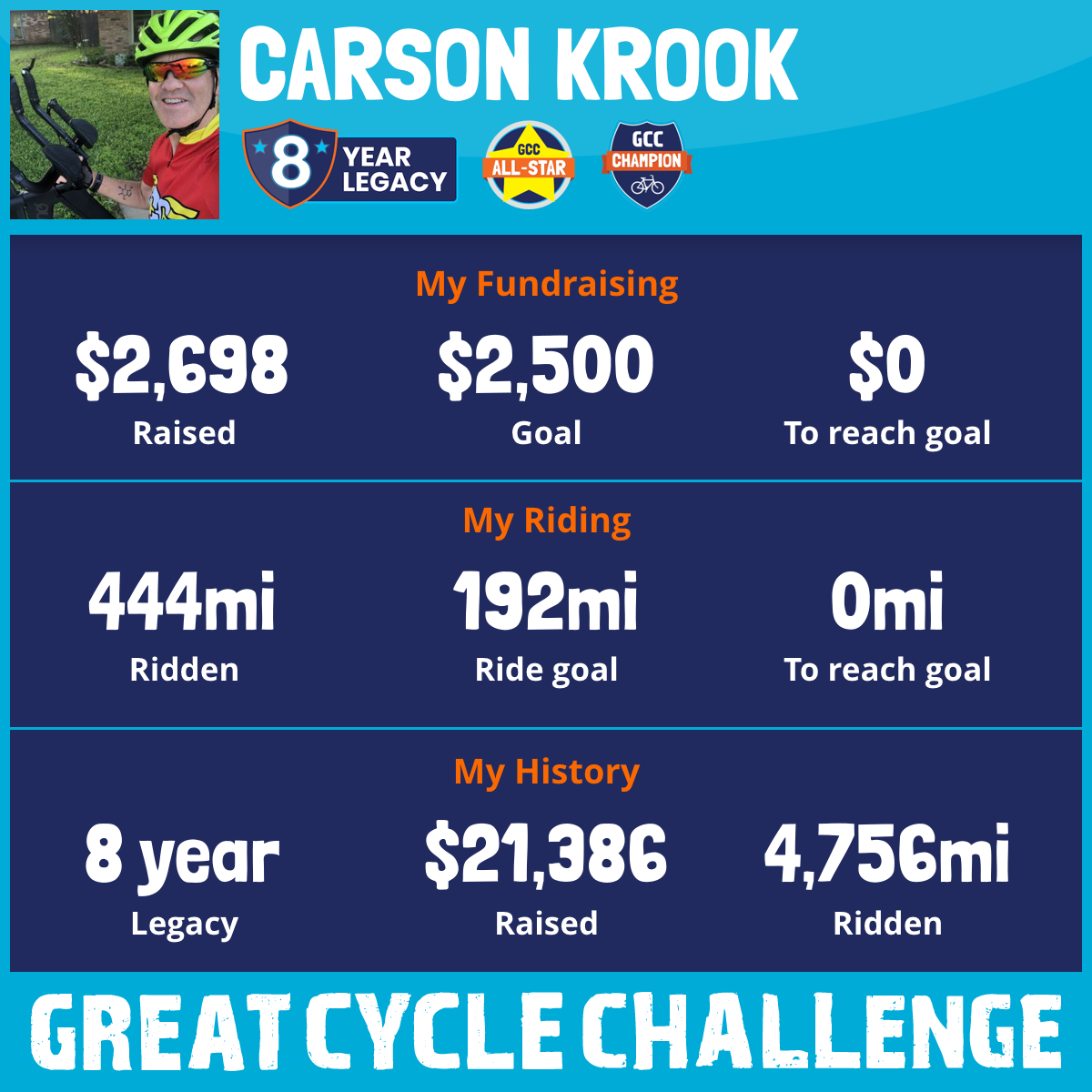 I've signed up for the 2025 Great Cycle Challenge--my 8th year. My goal this year is to pedal 192 miles throughout the month.