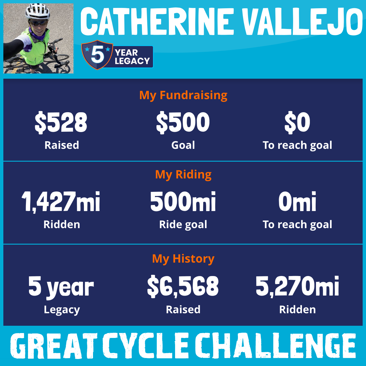 https://greatcyclechallenge.com/Riders/CatherineVallejo/b. Feel free to share this email with others 😊