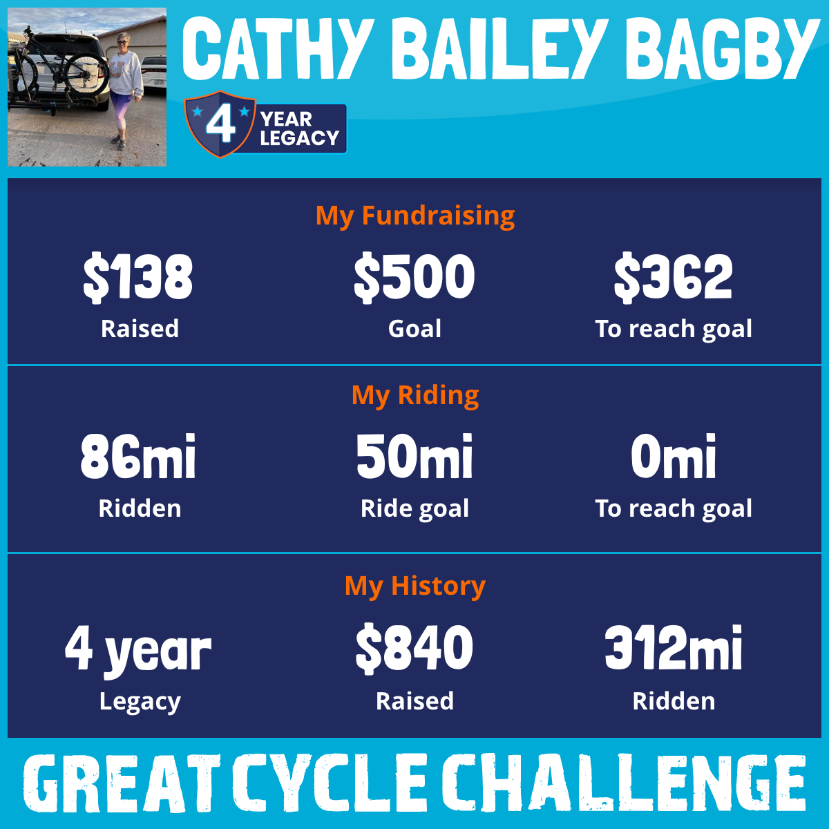 86 mi Ridden$138 Raised2025