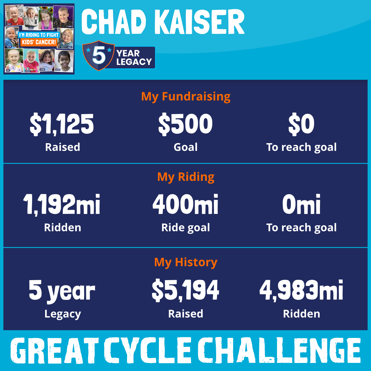 So I am raising funds through my challenge to help these kids and support Children's Cancer Research Fund to allow them to continue their work to develop lifesaving treatments and find a cure for childhood cancer.