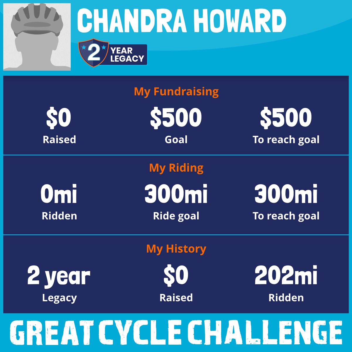I've raised $0 My goal is $500 Donate Now