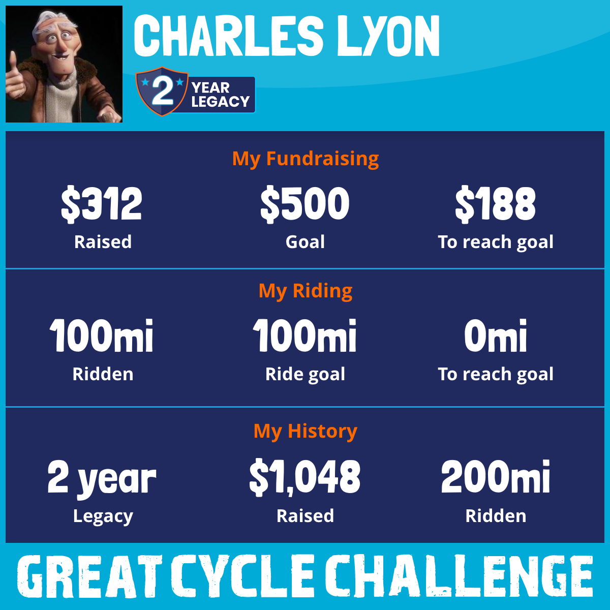 100 mi Ridden$312 Raised2025