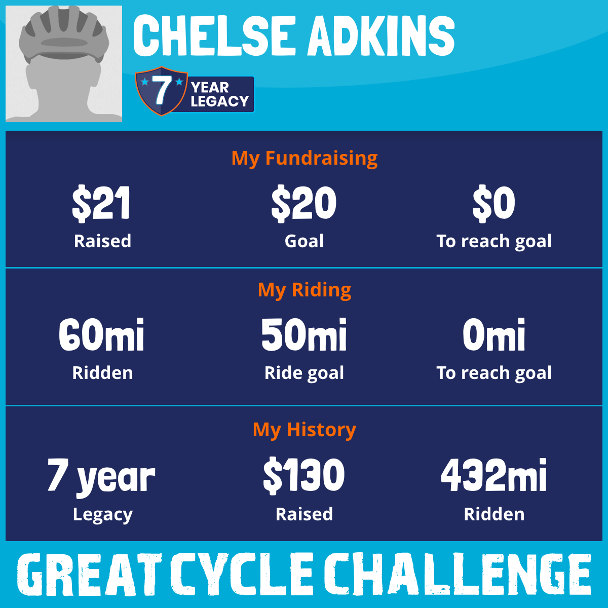 I am riding 50 mi to fight kids' cancer and save little lives. Please sponsor me to support my challenge!