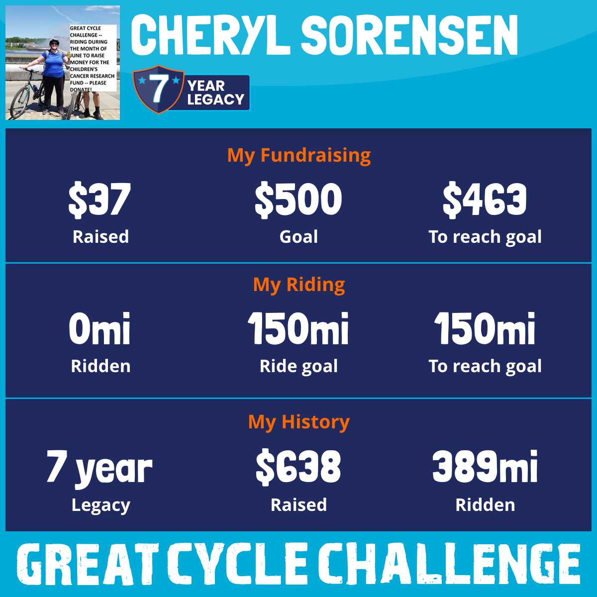 So I am raising funds through my challenge to help these kids and support Children's Cancer Research Fund to allow them to continue their work to develop lifesaving treatments and find a cure for childhood cancer.