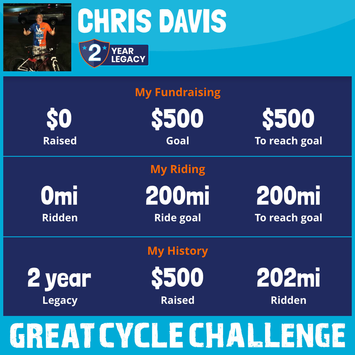 I've Ridden 0.0 mi My goal is 200 mi
