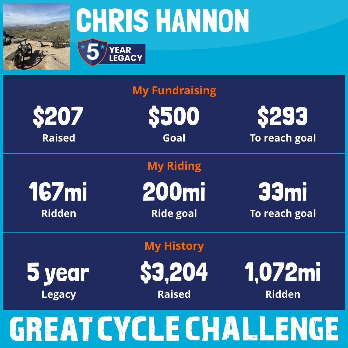 So I am raising funds through my challenge to help these kids and support Children's Cancer Research Fund to allow them to continue their work to develop lifesaving treatments and find a cure for childhood cancer.