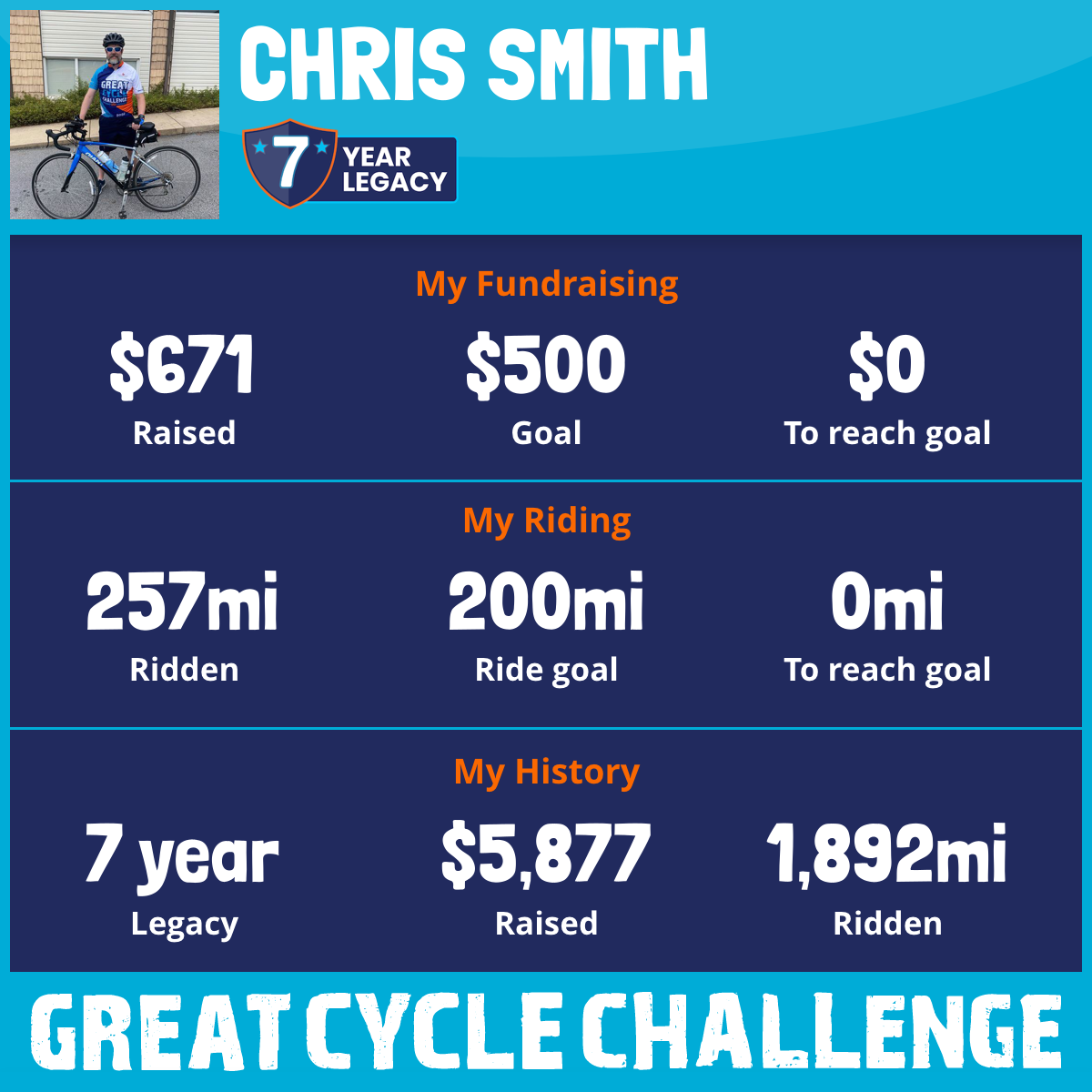 257 mi Ridden$671 Raised2025