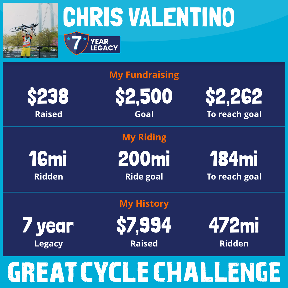 104 mi Ridden$2,300 Raised2016