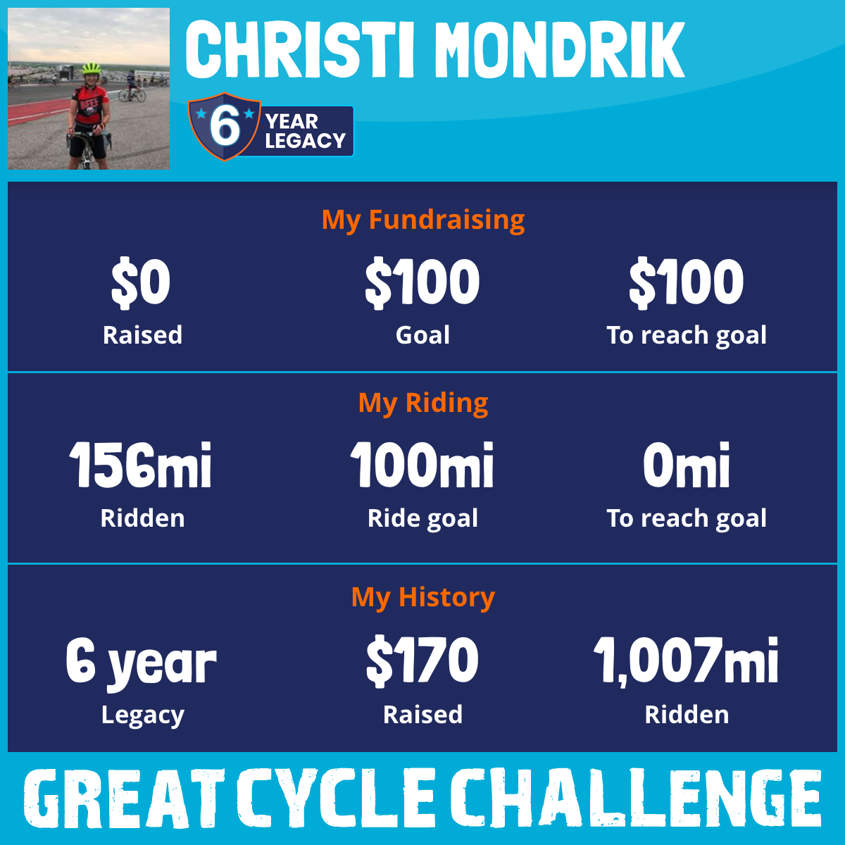 I am riding 100 mi in memory of Mary Kocan. Please sponsor me and support my challenge to fight kids' cancer and save little lives.