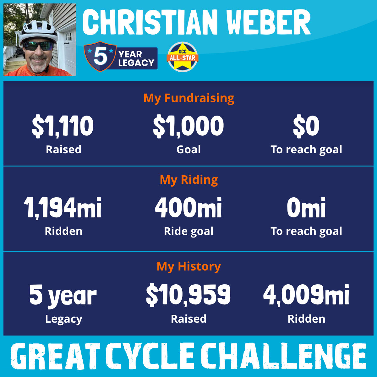 So I am raising funds through my challenge to help these kids and support Children's Cancer Research Fund to allow them to continue their work to develop lifesaving treatments and find a cure for childhood cancer.