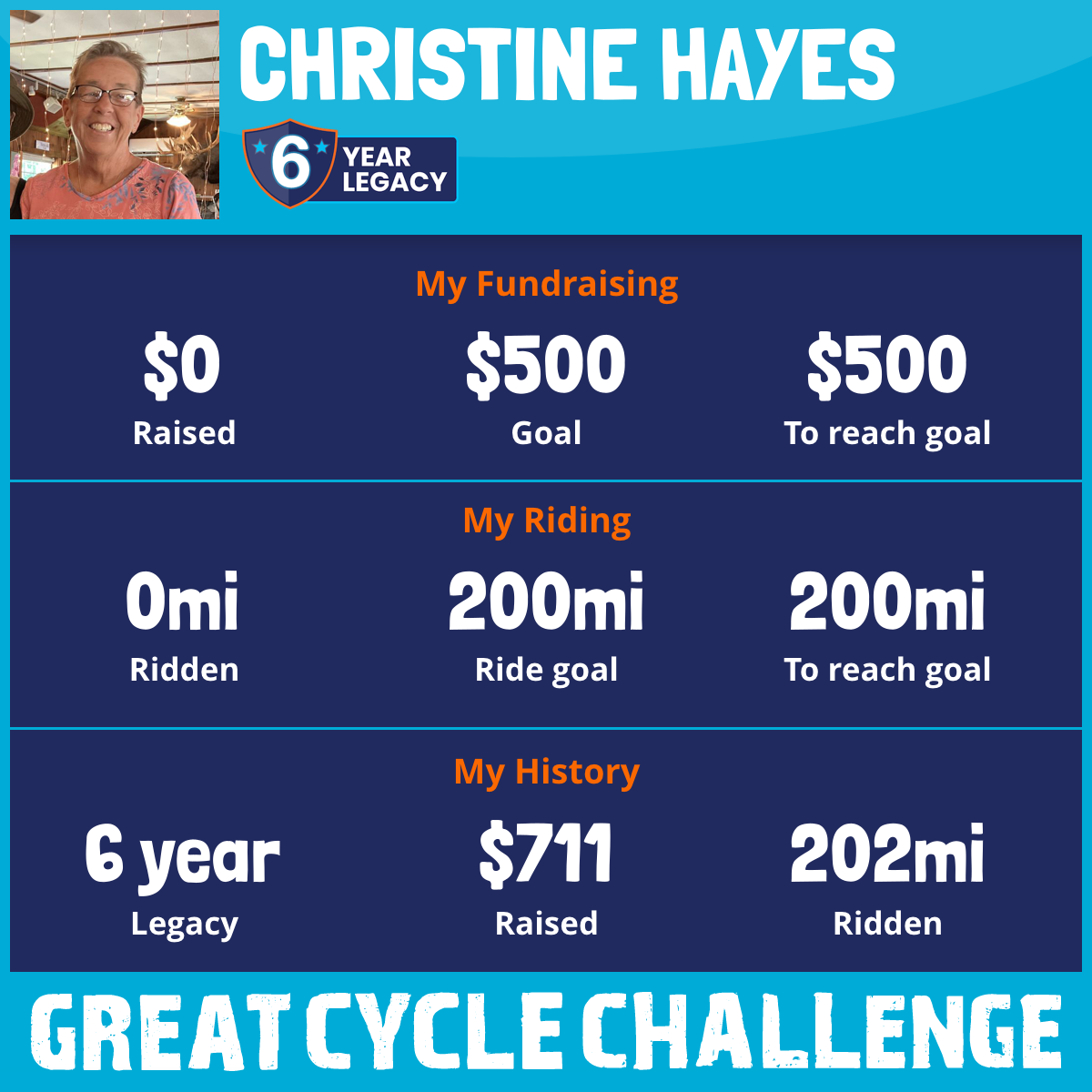 I am riding 200 mi for Maureen, Cathy, Aunt Gerry, TraciAnn. Please sponsor me and support my challenge to fight kids' cancer and save little lives.